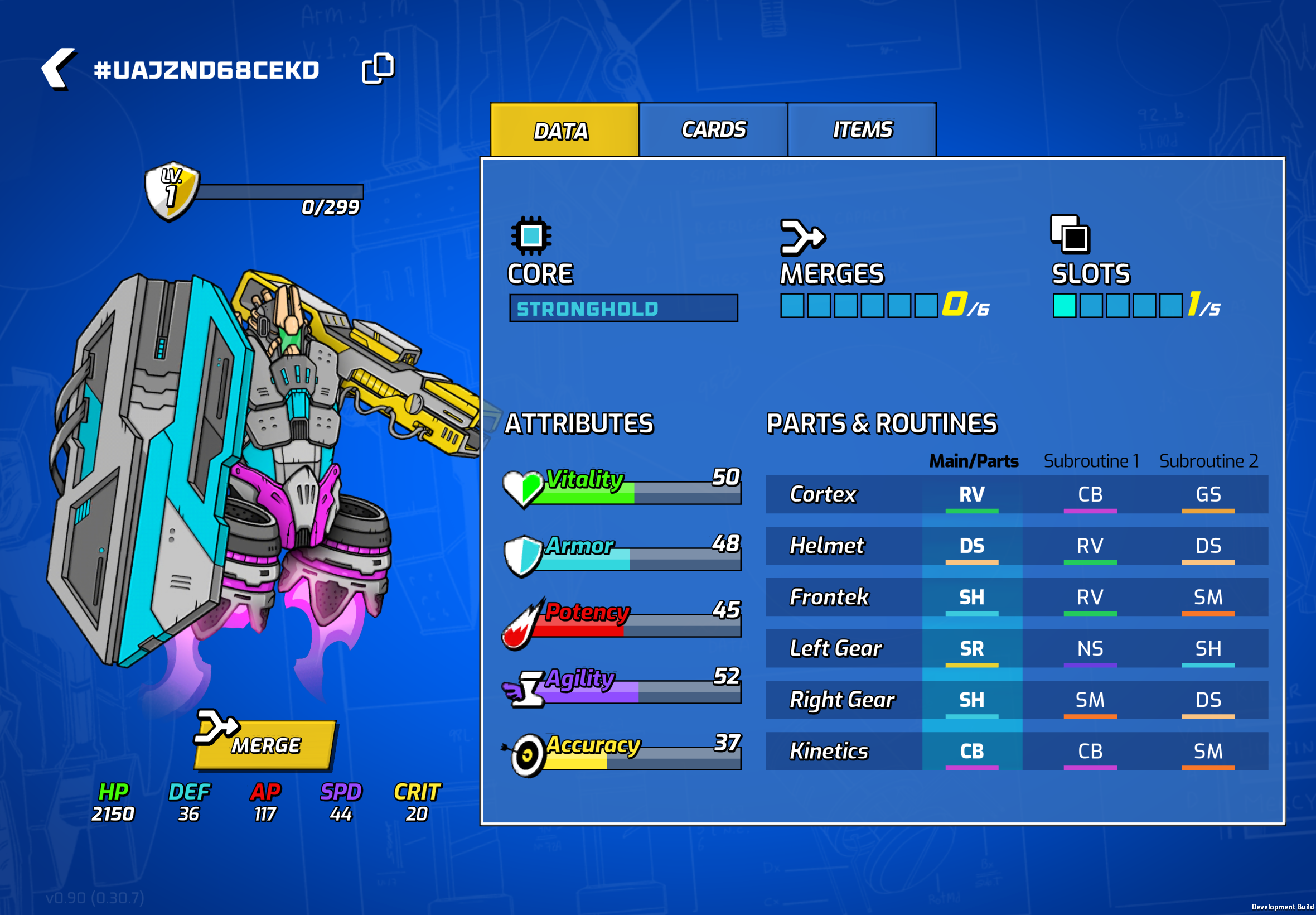 Aside from the parts and the gens, each Exobot has an inner Core that grants a larger boost to that type's main stats.